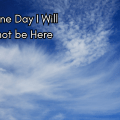 One Day, I Will not be Here